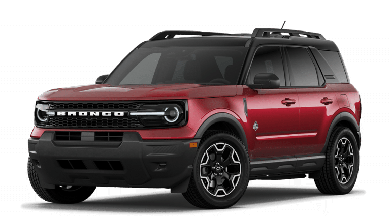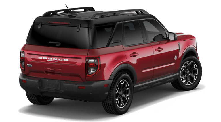 Recent Arrival! This 2026 Ford Bronco Sport Outer Banks in Ruby Red Metallic Tinted Clearcoat comes with the following features: 1.5L EcoBoost 8-Speed Automatic 4WD Ford Connectivity Package (1-Year Included), Internet access capable: 5G Modem - Ford Connectivity Package, 4-Wheel Disc Brakes, 6 Speakers, ABS brakes, Air Conditioning, Alloy wheels, AM/FM radio: SiriusXM with 360L, AM/FM Stereo, Apple CarPlay/Android Auto, Auto High-beam Headlights, Auto-dimming Rear-View mirror, Automatic temperature control, Brake assist, Compass, Delay-off headlights, Driver door bin, Driver vanity mirror, Dual front impact airbags, Dual front side impact airbags, Electronic Stability Control, Emergency communication system: SYNC 4 911 Assist, Exterior Parking Camera Rear, Four wheel independent suspension, Front anti-roll bar, Front Bucket Seats, Front Center Armrest, Front Driver/Passenger Seat Back Map Pockets, Front dual zone A/C, Front fog lights, Front reading lights, Fully automatic headlights, Heated door mirrors, Heated front seats, Heated steering wheel, Illuminated entry, Knee airbag, Low tire pressure warning, Memory seat, Occupant sensing airbag, Outside temperature display, Overhead airbag, Overhead console, Panic alarm, Passenger door bin, Passenger vanity mirror, Power door mirrors, Power driver seat, Power passenger seat, Power steering, Power windows, Radio data system, Rear anti-roll bar, Rear Parking Sensors, Rear reading lights, Rear seat center armrest, Rear window defroster, Rear window wiper, Remote keyless entry, Security system, SiriusXM with 360L, Speed control, Speed-sensing steering, Speed-Sensitive Wipers, Split folding rear seat, Steering wheel mounted audio controls, SYNC 4 with Enhanced Voice Recognition, Tachometer, Telescoping steering wheel, Tilt steering wheel, Traction control, Trip computer, Variably intermittent wipers, and Wheels: 18 Ebony Black.