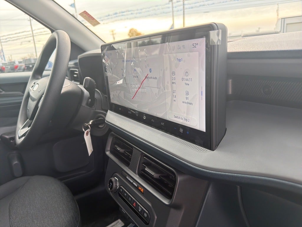 This 2026 Ford Maverick XL in Shadow Black comes with the following features: EcoBoost 2.0L I4 GTDi DOHC Turbocharged VCT 8-Speed Automatic AWD Equipment Group 102A (Front Cloth Bucket Seats, Radio: AM/FM Stereo with 6 Speakers, SiriusXM with 360L, and SYNC 4 with Enhanced Voice Recognition), Ford Connectivity Package (1-Year Included), Internet access capable: 5G Modem - Ford Connectivity Package, 2.91 Axle Ratio, 2K Trailer Hitch Receiver with 4-Pin Connector, 4-Wheel Disc Brakes, 6 Speakers, ABS brakes, Air Conditioning, AM/FM radio: SiriusXM with 360L, Apple CarPlay/Android Auto, Auto High Beams, Auto High-beam Headlights, Automatic temperature control, Brake assist, Bumpers: body-color, Compass, Delay-off headlights, Driver door bin, Driver vanity mirror, Dual front impact airbags, Dual front side impact airbags, Electronic Stability Control, Emergency communication system: SYNC 4 911 Assist, Exterior Parking Camera Rear, Four wheel independent suspension, Front anti-roll bar, Front Bucket Seats, Front Center Armrest, Front reading lights, Fully automatic headlights, Illuminated entry, Intersection Assist, Knee airbag, Lane-Keeping System, Low tire pressure warning, Occupant sensing airbag, Outside temperature display, Overhead airbag, Overhead console, Panic alarm, Passenger door bin, Passenger vanity mirror, Power steering, Power windows, Pre-Collision Assist with Automatic Emergency Braking, Radio data system, Rear anti-roll bar, Rear step bumper, Rear-View Camera, Remote keyless entry, Speed control, Speed-sensing steering, Steering wheel mounted audio controls, Telescoping steering wheel, Tilt steering wheel, Traction control, Trip computer, and Wheels: 17 Steel with Sparkle Silver Painted Cover.