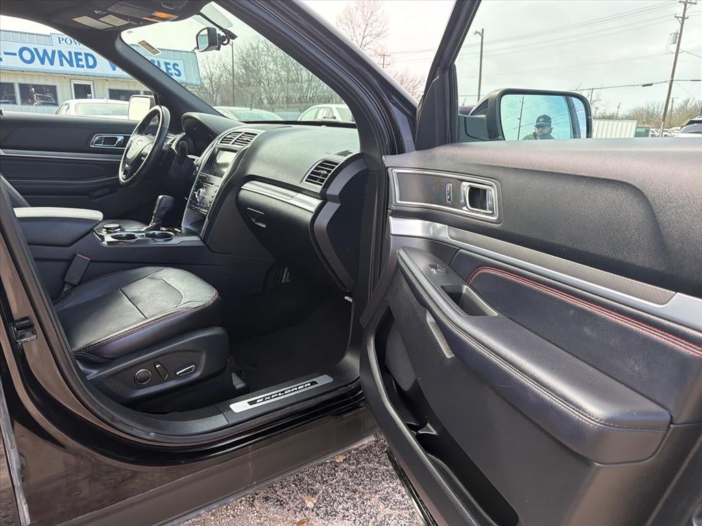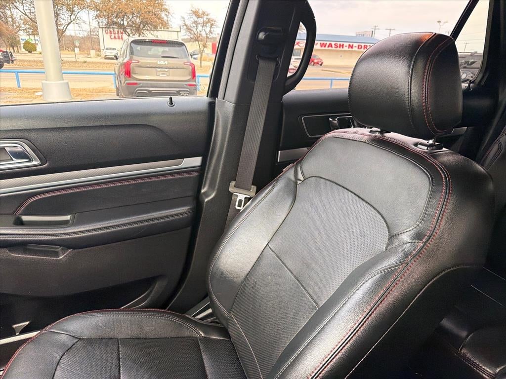 This 2017 Ford Explorer Sport in Shadow Black comes with the following features: 3.5L V6 6-Speed Automatic with Select-Shift 4WD BLIS Plus Inflatable Rear Safety Belts Package (Auto-Dimming Driver's Sideview Mirror, BLIS Blind Spot Information System, and Inflatable Rear Seatbelts), Equipment Group 401A (110V/400W AC Power Outlet, Ambient Lighting, Dual 2nd Row Smart Charging USB, Front 180 Degree Camera w/Split View & Washer, Memory Feature, Perforated Leather Heated/Cooled Bucket Seats, Power Folding Sideview Mirrors w/Autofold, Power Tilt/Telescoping Steering Wheel, Power-Adjustable Pedals, Radio: Premium Sound from Sony, Remote Control Front Windows, SYNC 3 Communications & Entertainment System, and Universal Garage Door Opener), 4WD, 12 Speakers, 20 Machined Aluminum w/Painted Pockets Wheels, 3.16 Axle Ratio, 3rd row seats: split-bench, 4-Wheel Disc Brakes, ABS brakes, Adaptive Cruise Control & Fwd Collision Warning, Air Conditioning, Alloy wheels, AM/FM radio: SiriusXM, Auto-dimming Rear-View mirror, Automatic temperature control, Brake assist, Bumpers: body-color, CD player, Compass, Delay-off headlights, Driver door bin, Driver vanity mirror, Dual front impact airbags, Dual front side impact airbags, Electronic Stability Control, Emergency communication system: SYNC 3 911 Assist, Exterior Parking Camera Rear, Four wheel independent suspension, Front & Rear Floor Liners, Front anti-roll bar, Front Bucket Seats, Front Center Armrest, Front dual zone A/C, Front fog lights, Front reading lights, Fully automatic headlights, Heated door mirrors, Heated front seats, Heated steering wheel, Illuminated entry, Knee airbag, Leather steering wheel, Low tire pressure warning, Navigation System, Occupant sensing airbag, Outside temperature display, Overhead airbag, Overhead console, Panic alarm, Passenger door bin, Passenger vanity mirror, Perforated Leather Heated Bucket Seats, Power door mirrors, Power driver seat, Power Liftgate, Power passenger seat, Power steering, Power windows, Premium audio system: Sony, Radio data system, Radio: Sony Audio System w/Single-CD/MP3-Capable, Rear air conditioning, Rear anti-roll bar, Rear reading lights, Rear seat center armrest, Rear window defroster, Rear window wiper, Remote keyless entry, Roof rack: rails only, Security system, Speed control, Speed-sensing steering, Speed-Sensitive Wipers, Split folding rear seat, Spoiler, Steering wheel mounted audio controls, Tachometer, Telescoping steering wheel, Tilt steering wheel, Traction control, Trip computer, Turn signal indicator mirrors, Twin Panel Moonroof, and Variably intermittent wipers.