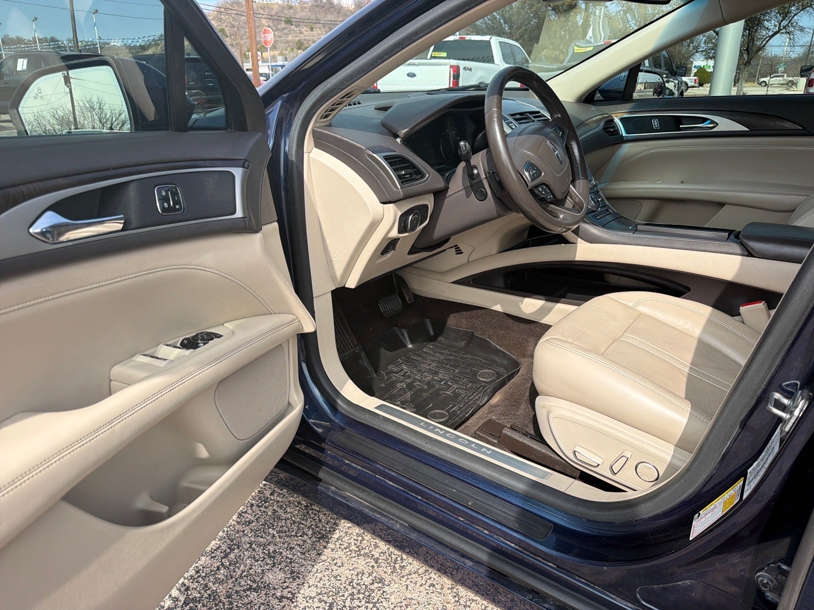 This 2017 Lincoln MKZ Reserve in Sapphire Blue Metallic comes with the following features: 2.0L GTDi 6-Speed Automatic with Select-Shift FWD Climate Package (Auto High Beams, Heated Rear-Seats, Heated Steering Wheel, Rain Sensing Wipers, and Windshield Wiper De-Icer), Equipment Group 300A, Technology Package (Adaptive Cruise Control w/Stop & Go, Enhanced Active Park Assist System, Forward Sensing System, Lane Keeping System, Pedestrian Detection, and Pre-Collision Assist), 11 Speakers, 4-Wheel Disc Brakes, ABS brakes, Adaptive suspension, Air Conditioning, All-Weather Floor Mats, Alloy wheels, AM/FM radio: SiriusXM, Auto tilt-away steering wheel, Auto-dimming door mirrors, Auto-dimming Rear-View mirror, Automatic temperature control, Brake assist, Bumpers: body-color, CD player, Compass, Delay-off headlights, Driver door bin, Driver vanity mirror, Dual front impact airbags, Dual front side impact airbags, Electronic Stability Control, Emergency communication system: SYNC 3 911 Assist, Exterior Parking Camera Rear, Four wheel independent suspension, Front anti-roll bar, Front Bucket Seats, Front Center Armrest, Front dual zone A/C, Front reading lights, Fully automatic headlights, Garage door transmitter, Genuine wood dashboard insert, Genuine wood door panel insert, Heated door mirrors, Heated front seats, High-Intensity Discharge Headlights, Illuminated entry, Knee airbag, Leather steering wheel, Low tire pressure warning, Memory seat, Navigation System, Occupant sensing airbag, Outside temperature display, Overhead airbag, Overhead console, Panic alarm, Passenger door bin, Passenger vanity mirror, Power door mirrors, Power driver seat, Power passenger seat, Power steering, Power windows, Prem Leather-Trimmed Micro-Perf Heated/Cooled (G), Radio data system, Radio: Lincoln Premium Sound System w/Single CD, Rear anti-roll bar, Rear Parking Sensors, Rear reading lights, Rear seat center armrest, Rear window defroster, Remote keyless entry, Security system, Speed control, Speed-sensing steering, Speed-Sensitive Wipers, Split folding rear seat, Steering wheel memory, Steering wheel mounted audio controls, SYNC 3, Tachometer, Telescoping steering wheel, Tilt steering wheel, Traction control, Trip computer, Turn signal indicator mirrors, Variably intermittent wipers, Ventilated front seats, and Wheels: 19 Magnetic Painted Machined-Aluminum.