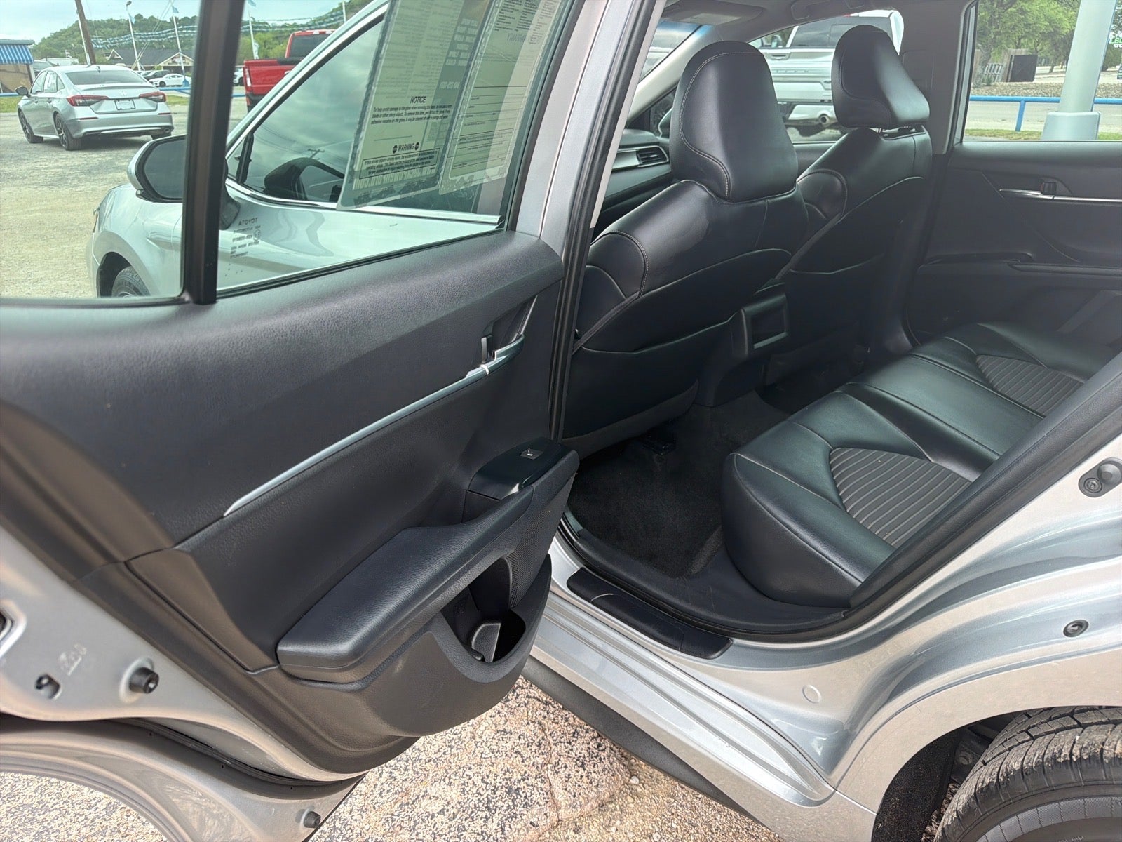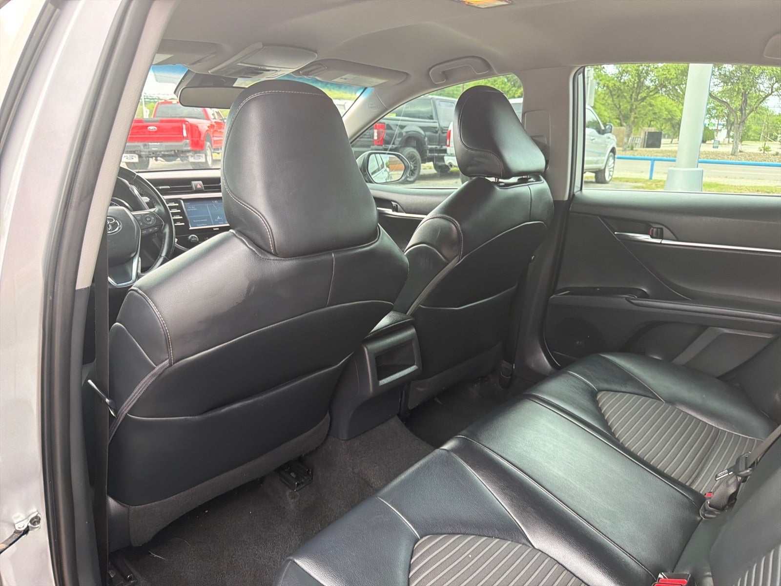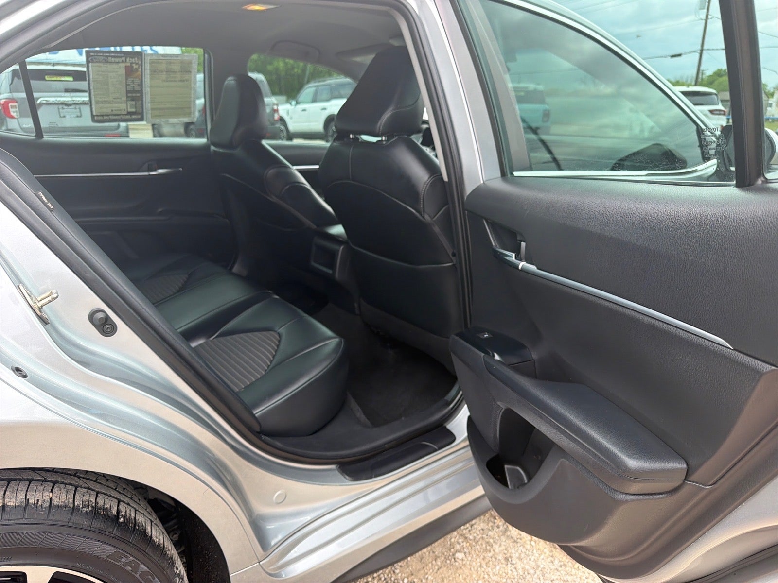 This 2020 Toyota Camry SE in Silver comes with the following features: 2.5L I4 DOHC 16V 8-Speed Automatic FWD Cloth, 4-Wheel Disc Brakes, 6 Speakers, ABS brakes, Air Conditioning, Alloy wheels, AM/FM radio: SiriusXM, Apple CarPlay/Android Auto, Auto High-beam Headlights, Automatic temperature control, Brake assist, Bumpers: body-color, Delay-off headlights, Driver door bin, Driver vanity mirror, Dual front impact airbags, Dual front side impact airbags, Electronic Stability Control, Emergency communication system: Safety Connect with 1-year trial, Exterior Parking Camera Rear, Fabric Seat Trim w/SofTex, Four wheel independent suspension, Front anti-roll bar, Front Bucket Seats, Front Center Armrest, Front reading lights, Front Sport Bucket Seats, Fully automatic headlights, Illuminated entry, Knee airbag, Leather Shift Knob, Low tire pressure warning, Occupant sensing airbag, Outside temperature display, Overhead airbag, Overhead console, Panic alarm, Passenger door bin, Passenger vanity mirror, Power door mirrors, Power driver seat, Power steering, Power windows, Radio data system, Radio: AM/FM Audio System, Rear anti-roll bar, Rear reading lights, Rear seat center armrest, Rear side impact airbag, Rear window defroster, Remote keyless entry, Security system, Speed control, Speed-sensing steering, Split folding rear seat, Spoiler, Sport steering wheel, Steering wheel mounted audio controls, Tachometer, Telescoping steering wheel, Tilt steering wheel, Traction control, Trip computer, Variably intermittent wipers, and Wheels: 8.0J x 18 Black Machined-Finish Alloy.