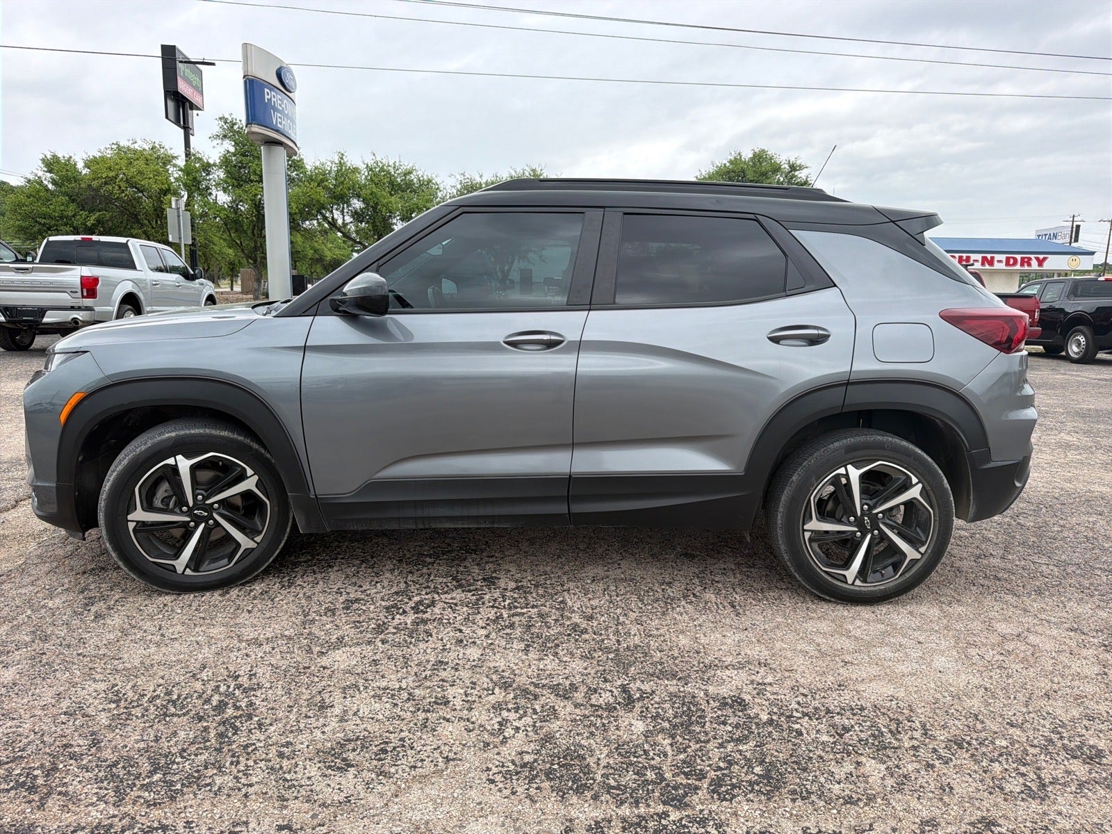 This 2022 Chevrolet TrailBlazer RS in Satin Steel Metallic comes with the following features: 1.3L Ecotec Turbo DOHC SIDI w/VVT CVT FWD Preferred Equipment Group 1RS (Heated Steering Wheel), 2-Way Power Driver Lumbar Seat Adjuster, 4-Way Manual Front Passenger Seat Adjuster, 4-Wheel Disc Brakes, 5.45 Axle Ratio, 6 Speakers, 6-Speaker Audio System Feature, 8-Way Power Driver Seat Adjuster, ABS brakes, Air Conditioning, Alloy wheels, AM/FM radio: SiriusXM, Auto High-beam Headlights, Brake assist, Bumpers: body-color, Cloth w/Leatherette Seat Trim, Compass, Delay-off headlights, Driver door bin, Driver vanity mirror, Dual front impact airbags, Dual front side impact airbags, Electronic Stability Control, Emergency communication system: OnStar and Chevrolet connected services capable, Exterior Parking Camera Rear, Flat-Folding Front Passenger Seatback, Front anti-roll bar, Front Bucket Seats, Front Center Armrest, Front fog lights, Front License Plate Bracket, Front reading lights, Front wheel independent suspension, Fully automatic headlights, Heated door mirrors, Heated Driver & Front Passenger Seats, Heated front seats, Heated steering wheel, Illuminated entry, Knee airbag, Leather Shift Knob, Leather steering wheel, Low tire pressure warning, Mosaic Black Metallic Two-Tone Roof, Occupant sensing airbag, Overhead airbag, Overhead console, Panic alarm, Passenger door bin, Passenger vanity mirror, Power door mirrors, Power driver seat, Power steering, Power windows, Radio data system, Radio: Chevrolet Infotainment 3 System, Rear seat center armrest, Rear side impact airbag, Rear window defroster, Rear window wiper, Remote keyless entry, Ride & Handling Suspension, Roof rack: rails only, Security system, SiriusXM Radio, Speed control, Split folding rear seat, Spoiler, Steering wheel mounted audio controls, Tachometer, Telescoping steering wheel, Tilt steering wheel, Traction control, Trip computer, Variably intermittent wipers, Wheels: 18 High Gloss Black Machined Aluminum, and Wireless Apple CarPlay/Android Auto.