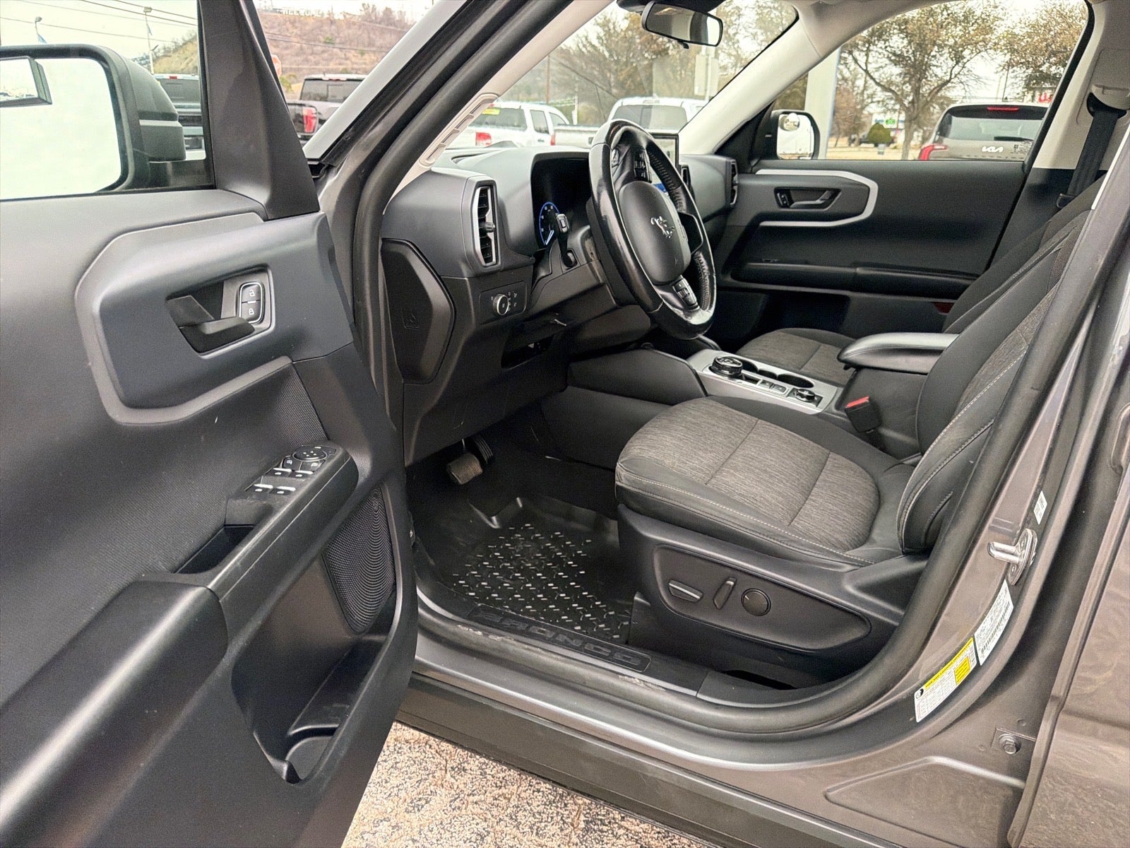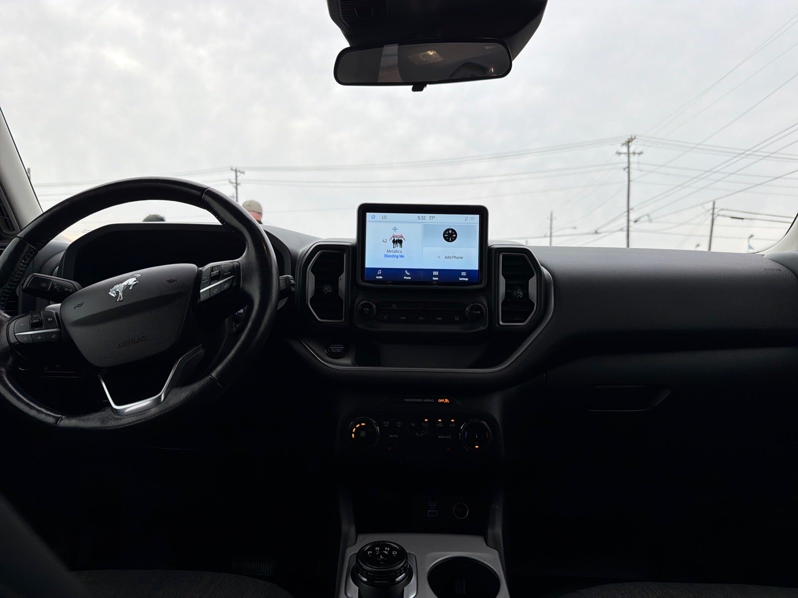 This 2022 Ford Bronco Sport Big Bend in Carbonized Gray Metallic comes with the following features: 1.5L EcoBoost 8-Speed Automatic 4WD Class II Trailer Tow Package w/Trailer Sway Control, Convenience Package (Front Driver & Passenger Seatback Zipper Pockets, Heated Front Bucket Seats, Intelligent Access (Lock/Unlock), Leather-Wrapped Steering Wheel, LED Fog Lamps, Rear Parking Sensors, Universal Garage Door Opener (UGDO), and Wireless Charging Pad), Equipment Group 200A, 3.80 Axle Ratio, 4-Wheel Disc Brakes, 6 Speakers, ABS brakes, Air Conditioning, Alloy wheels, AM/FM radio: SiriusXM, AM/FM Stereo, Auto High-beam Headlights, Automatic temperature control, Brake assist, Compass, Delay-off headlights, Driver door bin, Driver vanity mirror, Dual front impact airbags, Dual front side impact airbags, Electronic Stability Control, Emergency communication system: SYNC 3 911 Assist, Four wheel independent suspension, Front & Rear Floor Liners w/Carpet Mats, Front anti-roll bar, Front Bucket Seats, Front Center Armrest, Front reading lights, Fully automatic headlights, Heated door mirrors, Illuminated entry, Knee airbag, Low tire pressure warning, Occupant sensing airbag, Outside temperature display, Overhead airbag, Overhead console, Panic alarm, Passenger door bin, Passenger vanity mirror, Power door mirrors, Power steering, Power windows, Radio data system, Rear anti-roll bar, Rear reading lights, Rear seat center armrest, Rear window defroster, Rear window wiper, Remote keyless entry, Roof rack: rails only, Security system, SiriusXM Radio, Speed control, Speed-sensing steering, Speed-Sensitive Wipers, Split folding rear seat, Steering wheel mounted audio controls, SYNC 3 Communications & Entertainment System, SYNC 3/Apple CarPlay/Android Auto, Tachometer, Telescoping steering wheel, Tilt steering wheel, Traction control, Trip computer, Unique Cloth Front Bucket Seats, Variably intermittent wipers, and Wheels: 17 Carbonized Gray-Painted Aluminum.