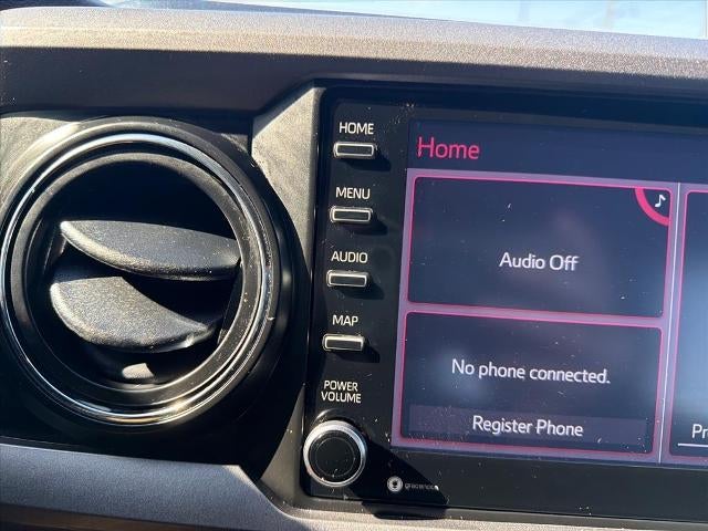 This 2022 Toyota Tacoma TRD Off-Road V6 in Silver comes with the following features: 3.5L V6 PDI DOHC 24V LEV3-ULEV70 278hp 6-Speed 4WD 4WD, ABS brakes, Alloy wheels, Electronic Stability Control, Front dual zone A/C, Heated door mirrors, Illuminated entry, Low tire pressure warning, Remote keyless entry, Traction control, 120V/400W Deck Mounted AC Power, 6 Speakers, Air Conditioning, AM/FM radio: SiriusXM, Anti-whiplash front head restraints, Apple CarPlay/Android Auto, Auto High-beam Headlights, Auto-dimming Rear-View mirror, Auto-Dimming Rearview Mirror w/HomeLink, Automatic temperature control, Black Overfenders, Brake assist, Bumpers: body-color, Driver door bin, Dual front impact airbags, Dual front side impact airbags, Emergency communication system: Safety Connect with 1-year trial, Engine Immobilizer, Exterior Parking Camera Rear, Fabric Seat Trim (FD), Front anti-roll bar, Front Bucket Seats, Front Center Armrest, Front fog lights, Front reading lights, Front Seats, Front wheel independent suspension, Garage door transmitter: HomeLink, Knee airbag, Leather Shift Knob, Occupant sensing airbag, Outside temperature display, Overhead airbag, Overhead console, Panic alarm, Passenger door bin, Power door mirrors, Power driver seat, Power Sliding Rear Window w/Privacy Glass, Power steering, Power windows, Radio: AM/FM Radio, Rear step bumper, Security system, Speed control, Speed-sensing steering, Split folding rear seat, Steering wheel mounted audio controls, Tachometer, Telescoping steering wheel, Tilt steering wheel, Trip computer, Turn signal indicator mirrors, Variably intermittent wipers, and Wheels: 16 x 7J Machined Contrast Alloy.