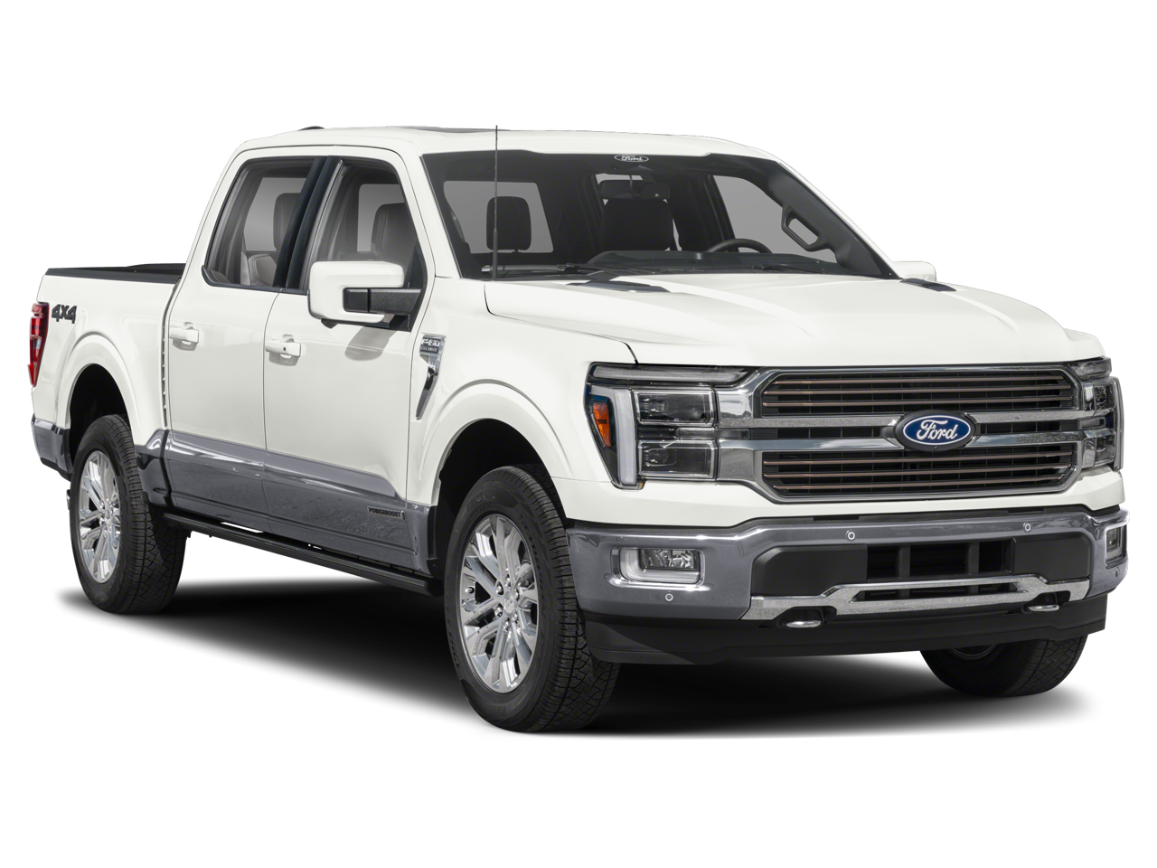 This 2025 Ford F-150 King Ranch in Black Metallic comes with the following features: 3.5L V6 EcoBoost 10-Speed Automatic 4WD Equipment Group 601A High, FX4 Off-Road Package, 4WD, 14 Speakers, 4-Wheel Disc Brakes, ABS brakes, Adjustable pedals, Air Conditioning, Alloy wheels, AM/FM radio: SiriusXM with 360L, Auto High-beam Headlights, Auto tilt-away steering wheel, Auto-dimming door mirrors, Auto-dimming Rear-View mirror, Automatic temperature control, Brake assist, Chrome wheels, Compass, Delay-off headlights, Driver door bin, Driver vanity mirror, Dual front impact airbags, Dual front side impact airbags, Electronic Locking w/3.55 Axle Ratio, Electronic Stability Control, Emergency communication system: SYNC 4 911 Assist, Front anti-roll bar, Front Bucket Seats, Front Center Armrest, Front dual zone A/C, Front fog lights, Front License Plate Bracket, Front reading lights, Front wheel independent suspension, Fully automatic headlights, Garage door transmitter, Genuine wood dashboard insert, Heads-Up Display, Heated door mirrors, Heated front seats, Heated rear seats, Heated steering wheel, Illuminated entry, Internet access capable: FordPass Connect 5G, King Ranch Multicontour Leather Bucket Seats, Leather steering wheel, Low tire pressure warning, Memory seat, Navigation system: Connected Navigation, Occupant sensing airbag, Outside temperature display, Overhead airbag, Overhead console, Panic alarm, Passenger door bin, Passenger vanity mirror, Pedal memory, Power door mirrors, Power driver seat, Power moonroof, Power passenger seat, Power steering, Power windows, Radio data system, Radio: B&O Unleashed Sound System by Bang & Olufsen, Rain sensing wipers, Rear reading lights, Rear seat center armrest, Rear step bumper, Rear window defroster, Remote keyless entry, Security system, Speed control, Split folding rear seat, Steering wheel memory, Steering wheel mounted audio controls, SYNC 4 w/Enhanced Voice Recognition, Tachometer, Telescoping steering wheel, Tilt steering wheel, Traction control, Trip computer, Turn signal indicator mirrors, Variably intermittent wipers, Ventilated front seats, Voltmeter, and Wheels: 20 Chrome-Like PVD.